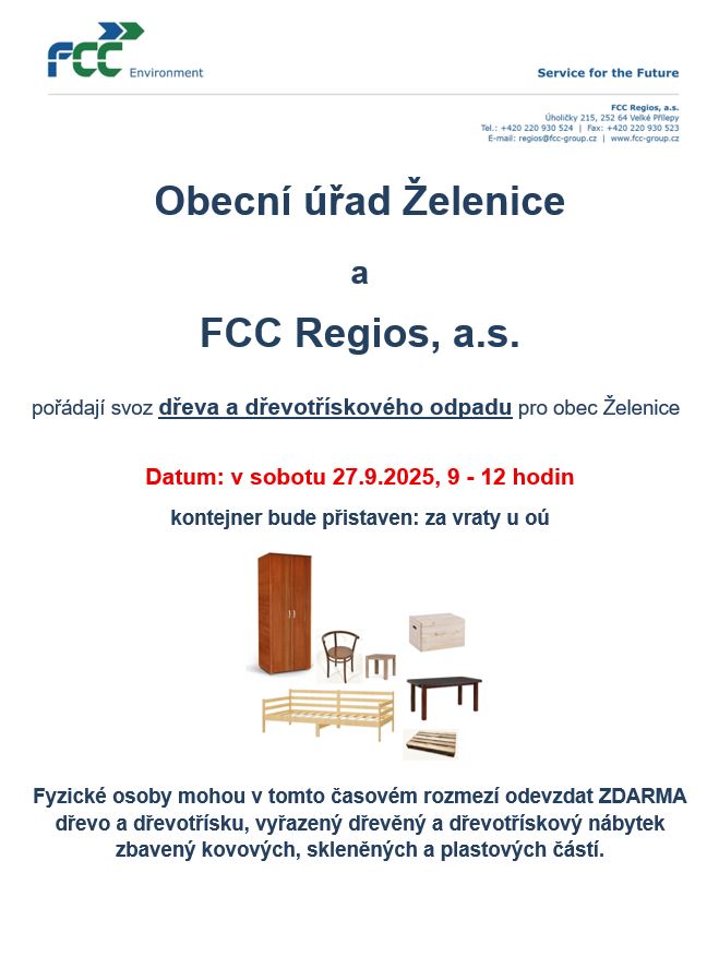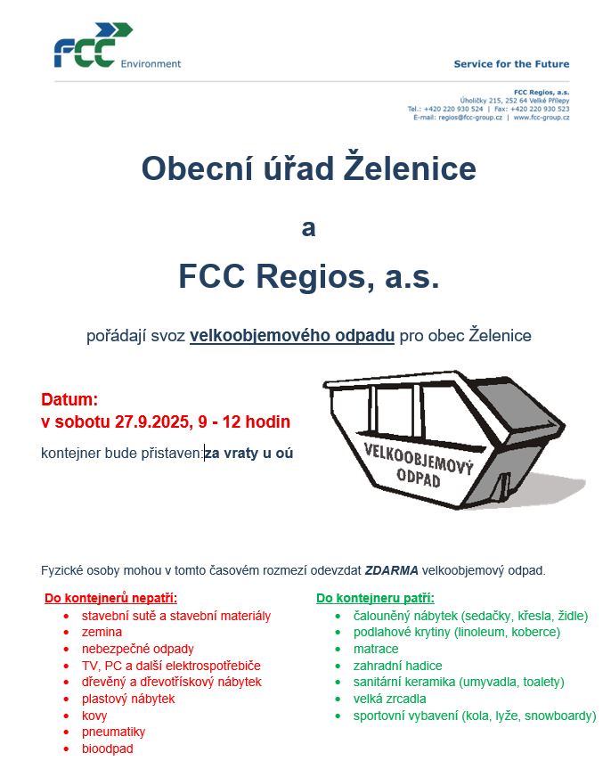 Za vraty u OÚ budou umístěny kontejnery na Velkoobjemový odpad a dřevo, možnost odevzdat odpad bude od 9-12h.