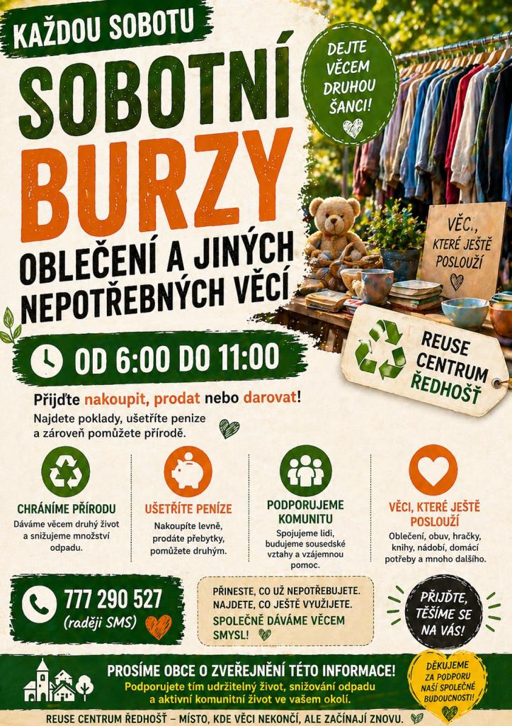 Přijďte nakoupit, darovat nebo prodat oblečení a jiné nepotřebné věci. Reuse centrum Ředhošť