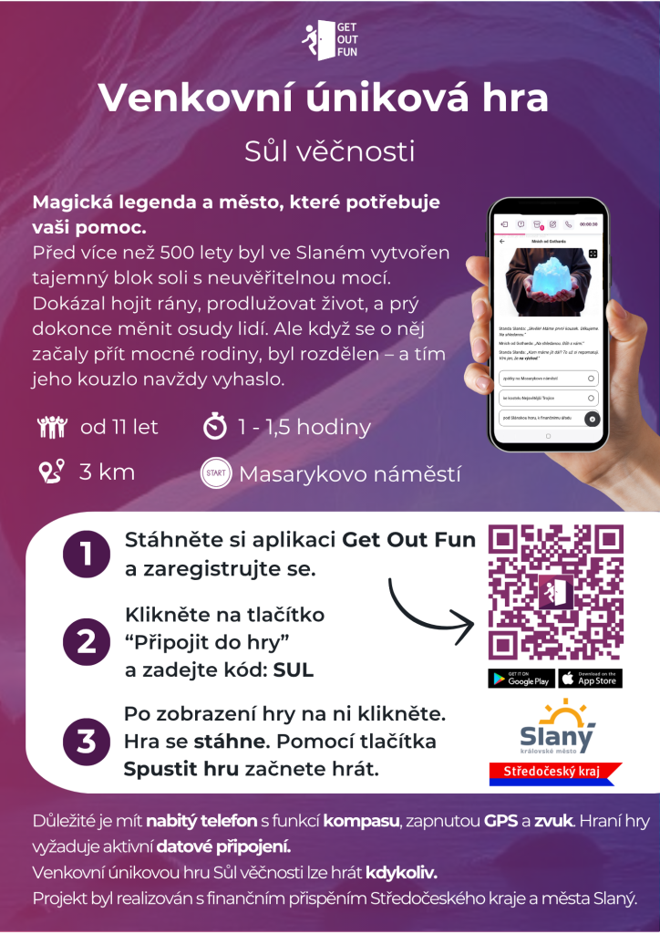 Ve Slaném jsou nově k dispozici dvě venkovní únikové hry, které hráče provedou městem prostřednictvím poutavých příběhů inspirovaných legendami i skutečnými historickými událostmi. Hry jsou zdarma, dostupné kdykoliv a hrají se prostřednictvím mobilní aplikace. Za jejich vznikem stojí město Slaný ve spolupráci se Středočeským krajem.