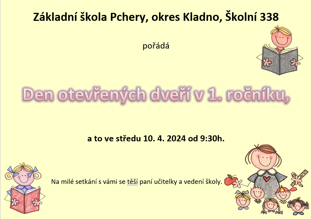 ZÁKLADNÍ ŠKOLA PCHERY: Zápis do první 1. třídy Den otevřených dveří